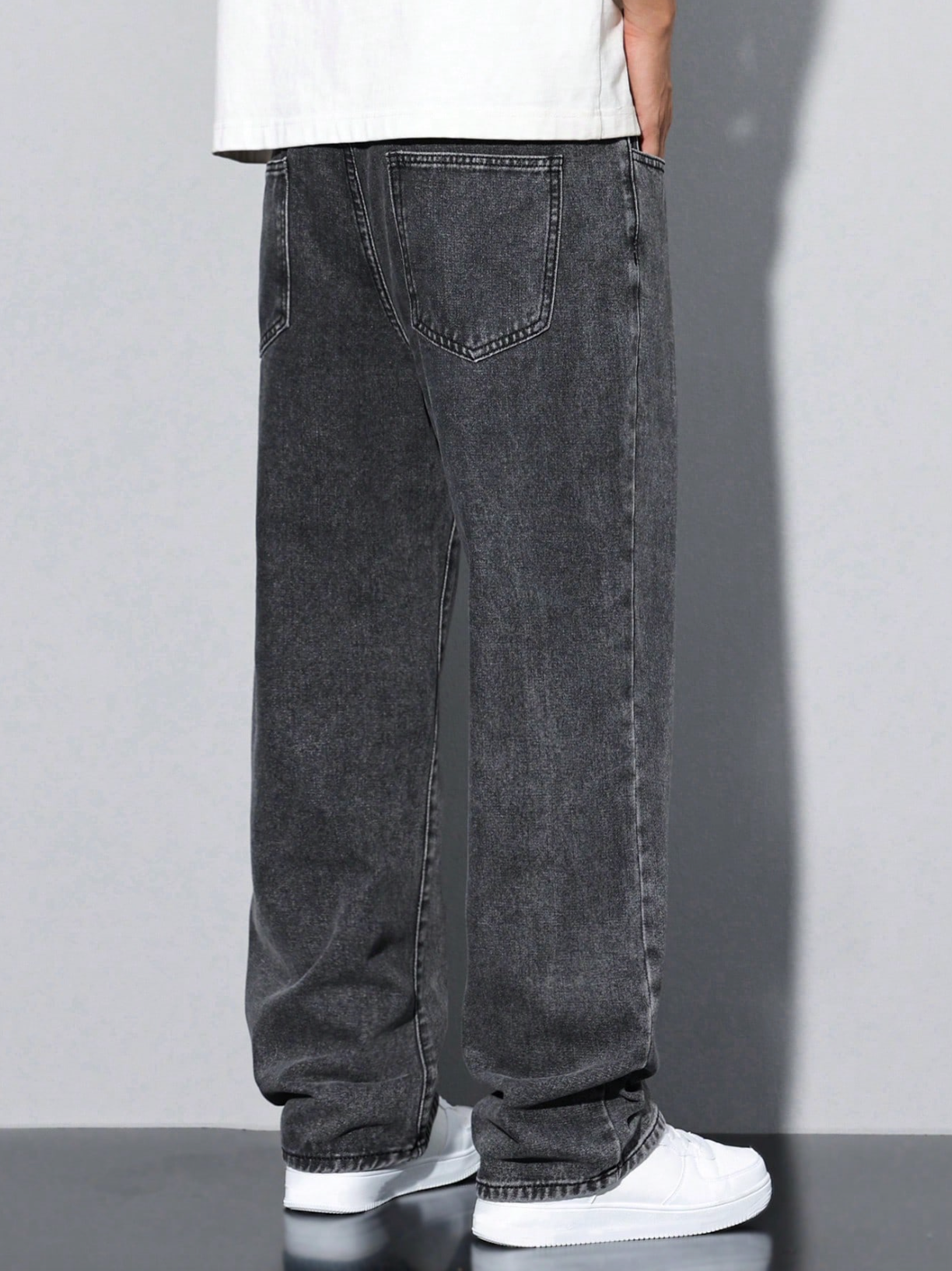 Loose Men Slant Pocket Straight Leg Jeans