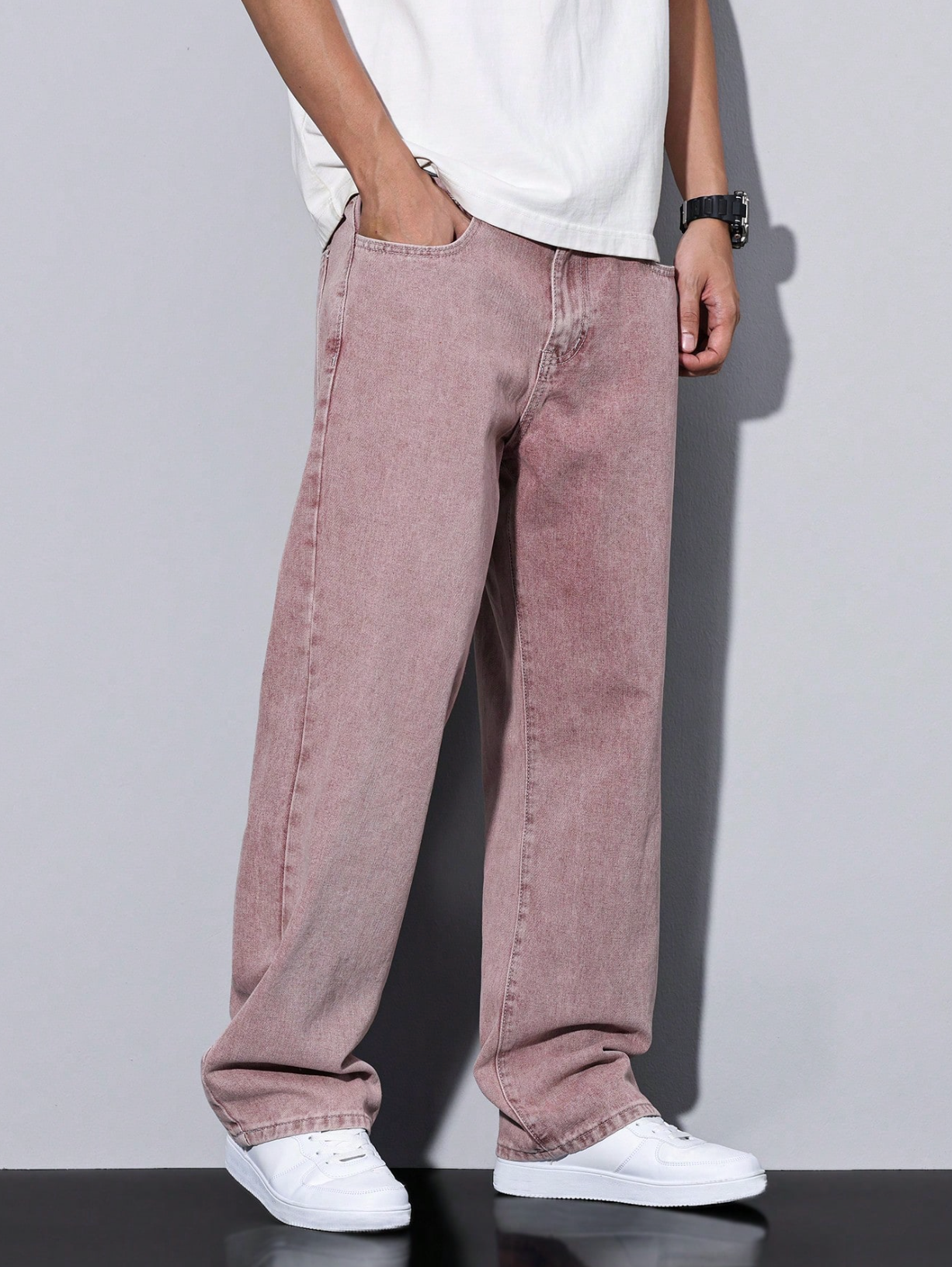 Loose Men Slant Pocket Straight Leg Jeans